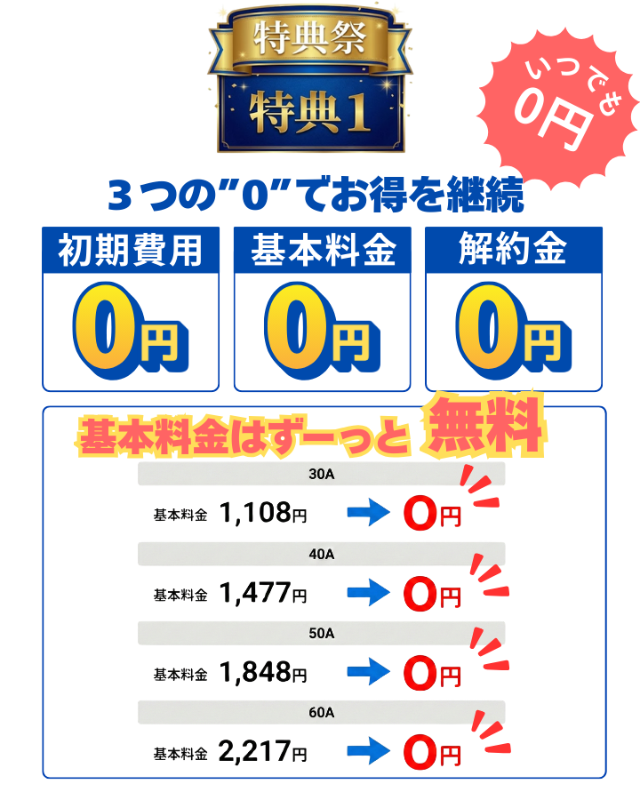 - 初月の電気料金の請求が完了するまでに解約、または解約のお申し出があった場合。